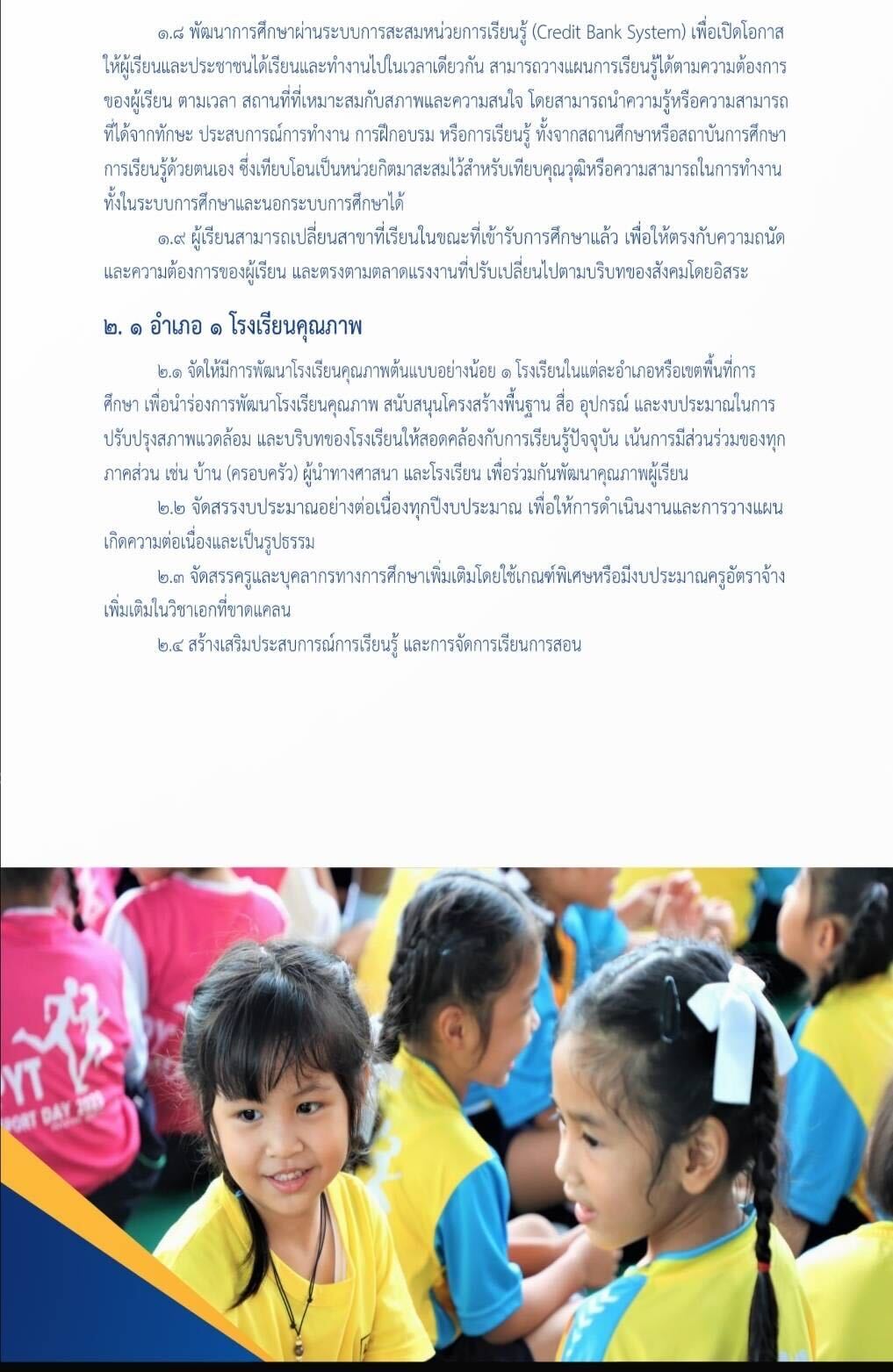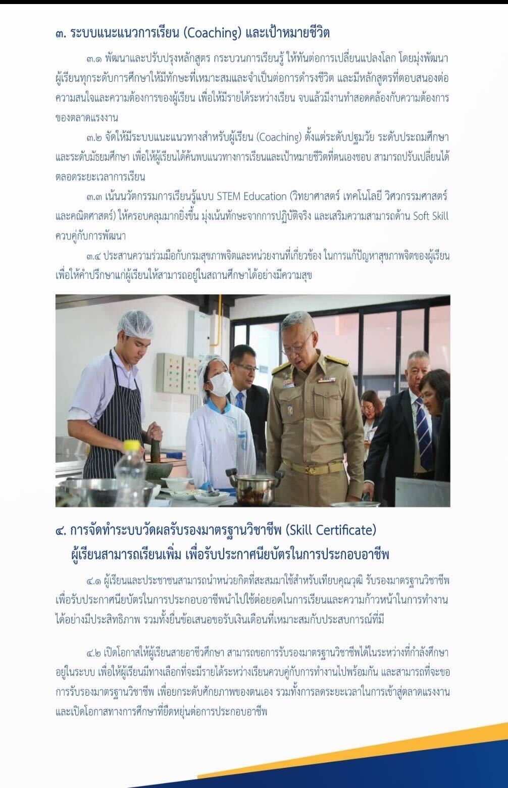 3. ระบบแนะแนวการเรียน (Coaching) และเป้าหมายชีวิต พัฒนาและปรับปรุงหลักสูตร กระบวนการเรียนรู้ ให้ทันต่อการเปลี่ยนแปลงของโลก โดยมุ่งพัฒนาผู้เรียนทุกระดับการศึกษาให้มีทักษะที่เหมาะสมต่อการตำรงชีวิต