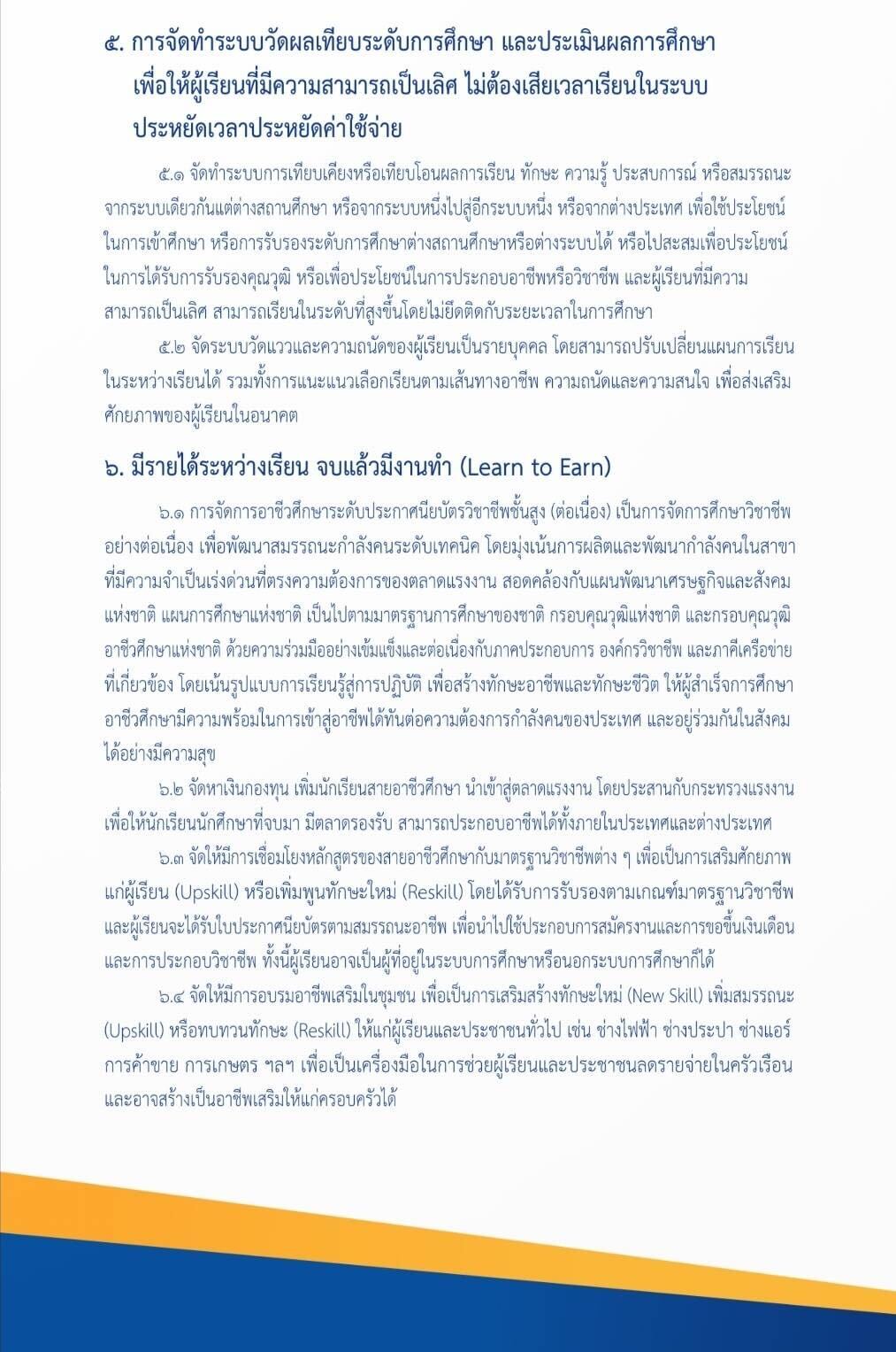 5.การจัดทำระบบวัดผลเทียบระดับการศึกษา และประเมินผลการศึกษา เพื่อให้ผู้เรียนที่มีความสามารถเป็นเลิศ ไม่ต้องเสียเวลาเรียนในระบบ ประหยัดเวลาประหยัดค่าใช้จ่าย