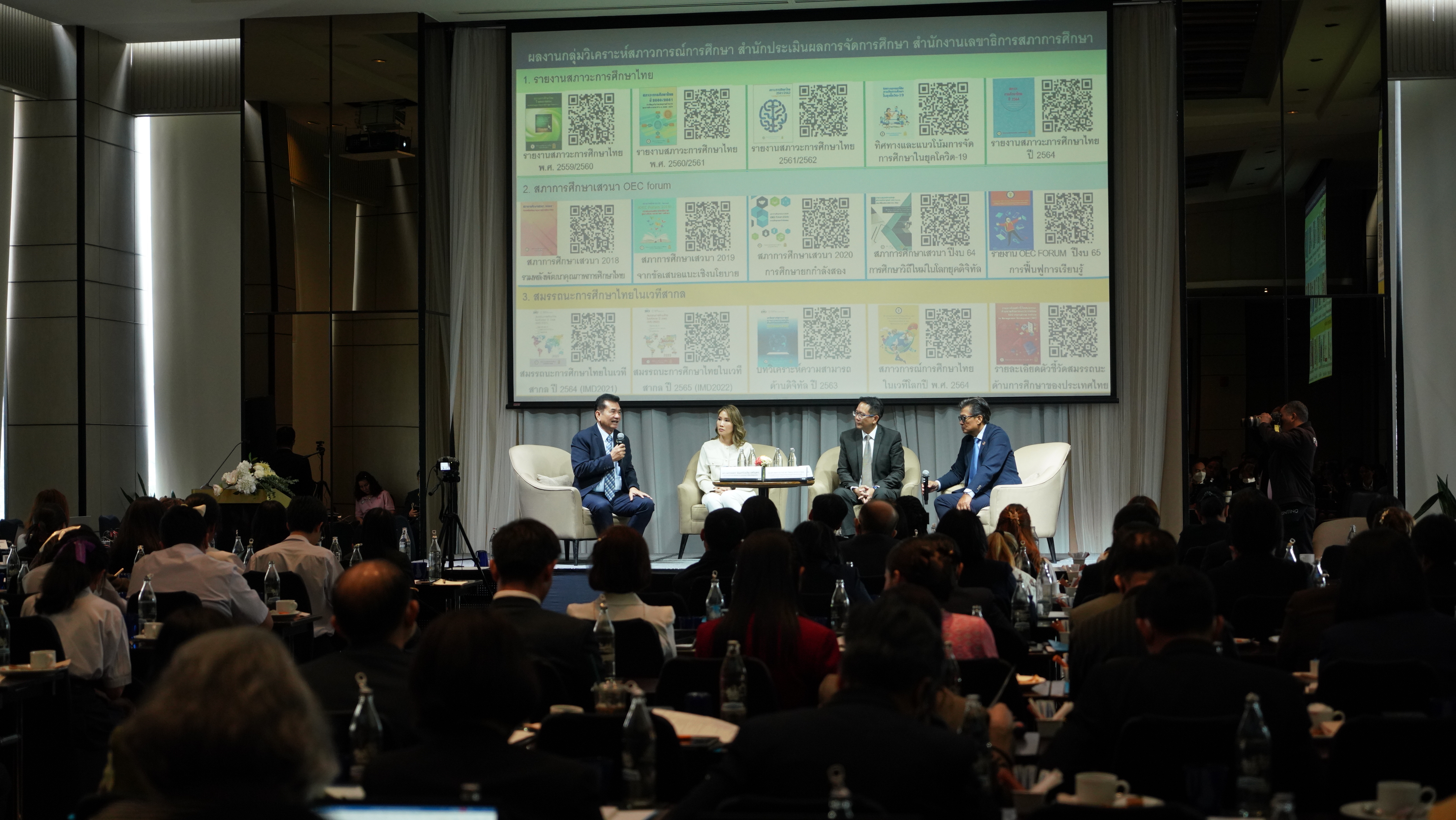 ช่วงสุดท้ายของงานเป็น การเสวนาประเด็นสำคัญใน เรื่อง “สภาวการณ์การศึกษาไทยในยุค Global Boiling” โดยมีผู้เชี่ยวชาญ นักวิชาการ ร่วมกันแสดงความคิดเห็น ประกอบด้วย ดร.พะโยม ชิณวงศ์ รองประธานคณะทำงานฝ่ายอำนวยการของรัฐมนตรีว่าการกระทรวงศึกษาธิการ, รองศาสตราจารย์ ดร.วิษณุ อรรถวานิช รองผู้อำนวยการศูนย์วิจัยเศรษฐศาสตร์ประยุกต์ คณะเศรษฐศาสตร์ มหาวิทยาลัยเกษตรศาสตร์, ดร.นรรธพร จันทร์เฉลี่ย เสริบุตร ประธานเจ้าหน้าที่บริหาร มูลนิธิสตาร์ฟิชเอ็ดดูเคชั่น โดยมี ดร.สุกิจ อุทินทุ อดีตกรรมการสภาการศึกษา เป็นผู้ดำเนินรายการ