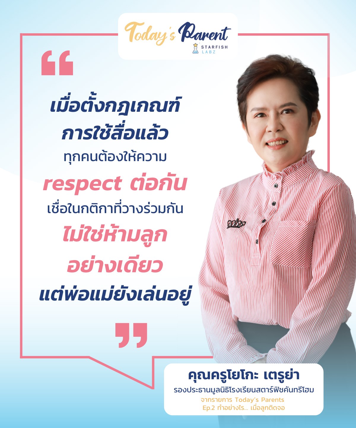 ดังนั้นการไม่ให้ลูกใช้หน้าจอเลยจึงเลี่ยงค่อนข้างยาก เกิน 90% ของครัวเรือนไทย มีสมาร์ทโฟนใช้ ประกอบกับ ปัจจุบันการเรียนถูกผลักให้เรียนออนไลน์มากขึ้น