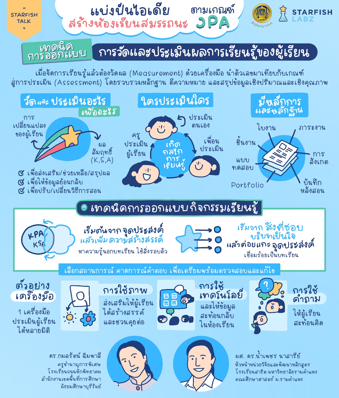 Starfish Talk แบ่งปันไอเดีย สร้างห้องเรียนสมรรถนะตามเกณฑ์ วPA ในหัวข้อ “เทคนิคการออกแบบการวัดและประเมินผลการเรียนรู้ของผู้เรียน ” ในวันอังคารที่ 27 กุมภาพันธ์ 2567 เวลา 19.00 - 20.00 น.โดยมีแขกรับเชิญมาร่วมแบ่งปันความรู้ ได้แก่