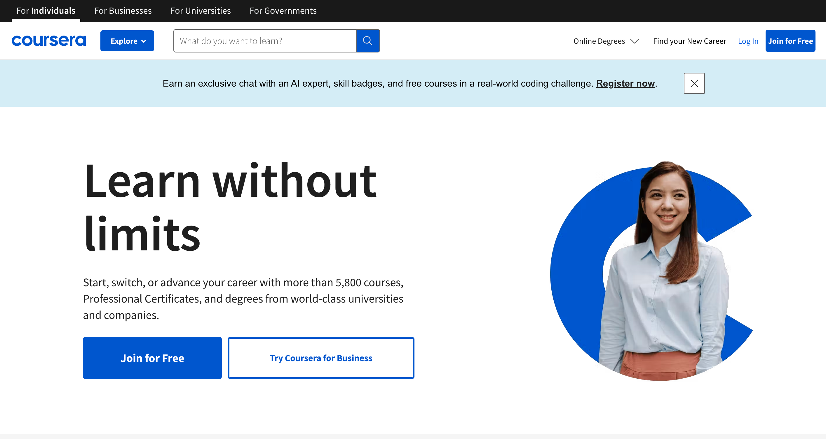 มาต่อกันที่ Coursera แพลตฟอร์มยอดฮิตขวัญใจที่ถือเป็นแหล่งรวมคอร์สเรียนออนไลน์ที่ใหญ่ที่สุดแห่งหนึ่งของโลกเราเลยก็ว่าได้ มีคอร์สมากกว่า 4,600 คอร์ส ตั้งแต่คอร์สในระดับระยะเวลาสั้น ๆ ระดับพื้นฐาน จนไปถึงในระดับที่ใช้ระยะเวลา เช่น เพื่อทักษะการทำงานอย่างเฉพาะเจาะจง มีใบรับรองวิชาชีพ และกระทั่งระดับปริญญาจุดเด่นของ Coursera แน่นอนว่าคือการจัดสอนโดยมหาวิทยาลัยชื่อดังมากกว่า 150 แห่ง และบริษัทใหญ่ ๆ ดัง ๆ อย่าง IBM, Google ก็มาร่วมด้วย ตัวแพลตฟอร์มเกิดจากการร่วมก่อตั้งโดย 2 อาจารย์ภาควิชาวิทยาการคอมพิวเตอร์ของมหาวิทยาลัยสแตนฟอร์ด คือ Daphne Koller และ Andrew Ng ซึ่งมีความเชี่ยวชาญในด้านวิทยาการคอมพิวเตอร์, Machine Learning และ AI สำหรับคอร์สในแขนงจิตวิทยา มีมากกว่า 1,800 วิชาให้ผู้เรียนได้เลือก มีทั้งแบบฟรีและเสียค่าใช้จ่าย ทั้งระดับเริ่มต้นและระดับที่ยากขึ้นมาอีกนิด เหมาะสำหรับคุณครูที่มีทักษะทางด้านภาษาอังกฤษ มองหาแหล่งเรียนรู้ที่มีตัวเลือกหลายวิชาและหลายระดับในการเรียนรู้