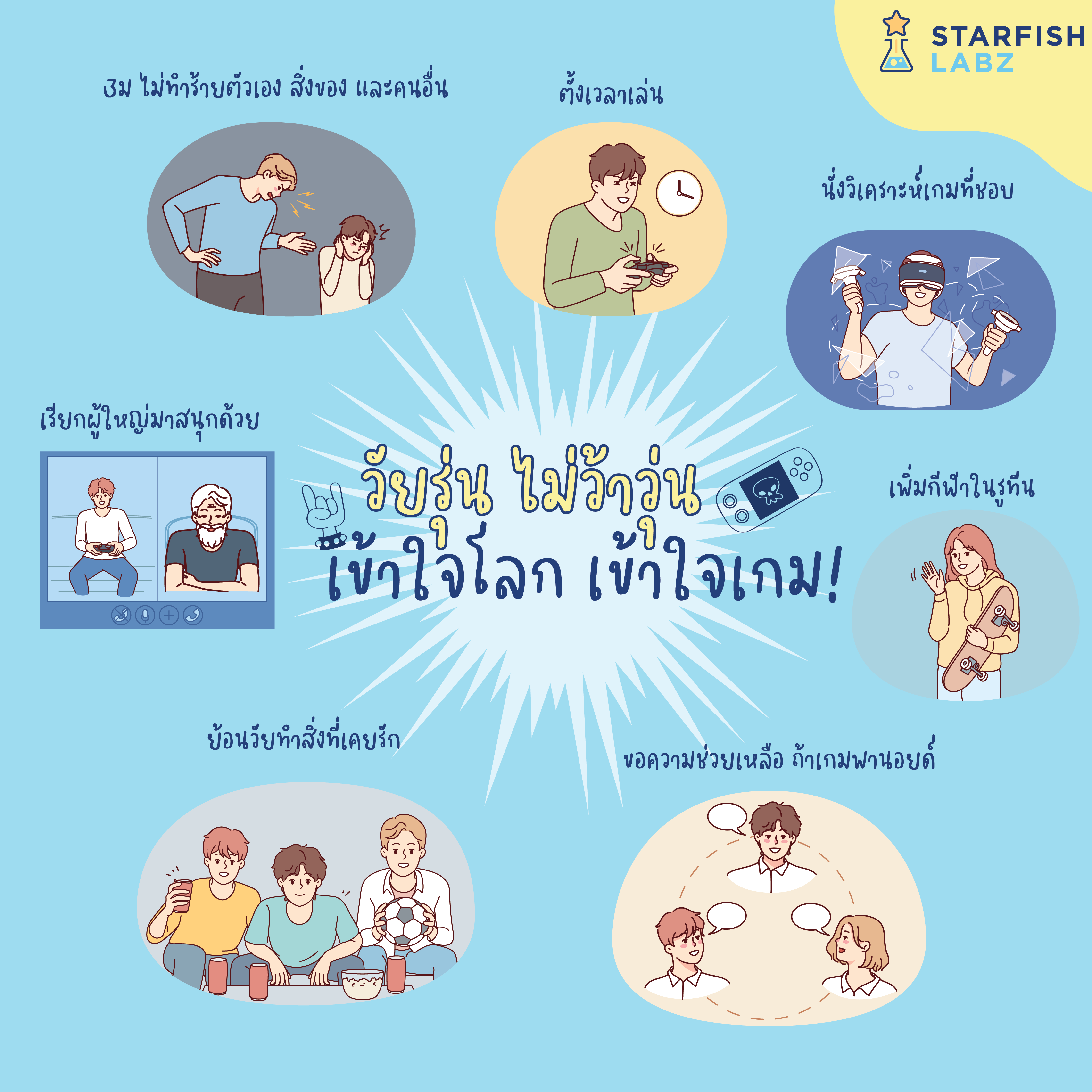 เล่นเกมมันสนุกจริง ๆ ทั้งได้มีเวลาอยู่กับตัวเอง และยังชวนเพื่อนมาเล่นด้วยกันได้อีกมีทั้งออฟไลน์ ออนไลน์ ตัวเลือกเยอะเต็มไปหมด ต่อให้เรียนมาเหนื่อยการบ้านเยอะแค่ไหนได้เปิดเกมเล่นสักตา ฟินที่สุด แต่รู้หรือเปล่าถ้าน้อง ๆ ใช้เวลากับเกมมากเกินไป อาจทำให้เราพลาดกิจกรรมบนโลกแห่งความเป็นจริง ดังนั้นมาหาจุดตรงกลางร่วมกันดีกว่าแบ่งเวลาเล่นเกม แบ่งเวลาทำกิจกรรม และทำอย่างอื่นให้ทุกอย่างบาลานซ์ แค่นี้การเล่นเกมของน้อง ๆก็จะคุ้มค่า คุณพ่อคุณแม่ผู้ปกครองไม่ต้องกังวลเพราะน้องรู้จักบริหารเวลาตัวเองวันนี้พี่ ๆ Starfish Labz สรุปมาให้ครบ กิจกรรมสุด enjoy และวิธีแยกโลกเกมกับความเป็นจริงเพราะทุกอย่างมีความแตกต่างเรียนรู้ไว้ดีต่อตัวน้องในปัจจุบันรวมถึงอนาคตแน่นอน