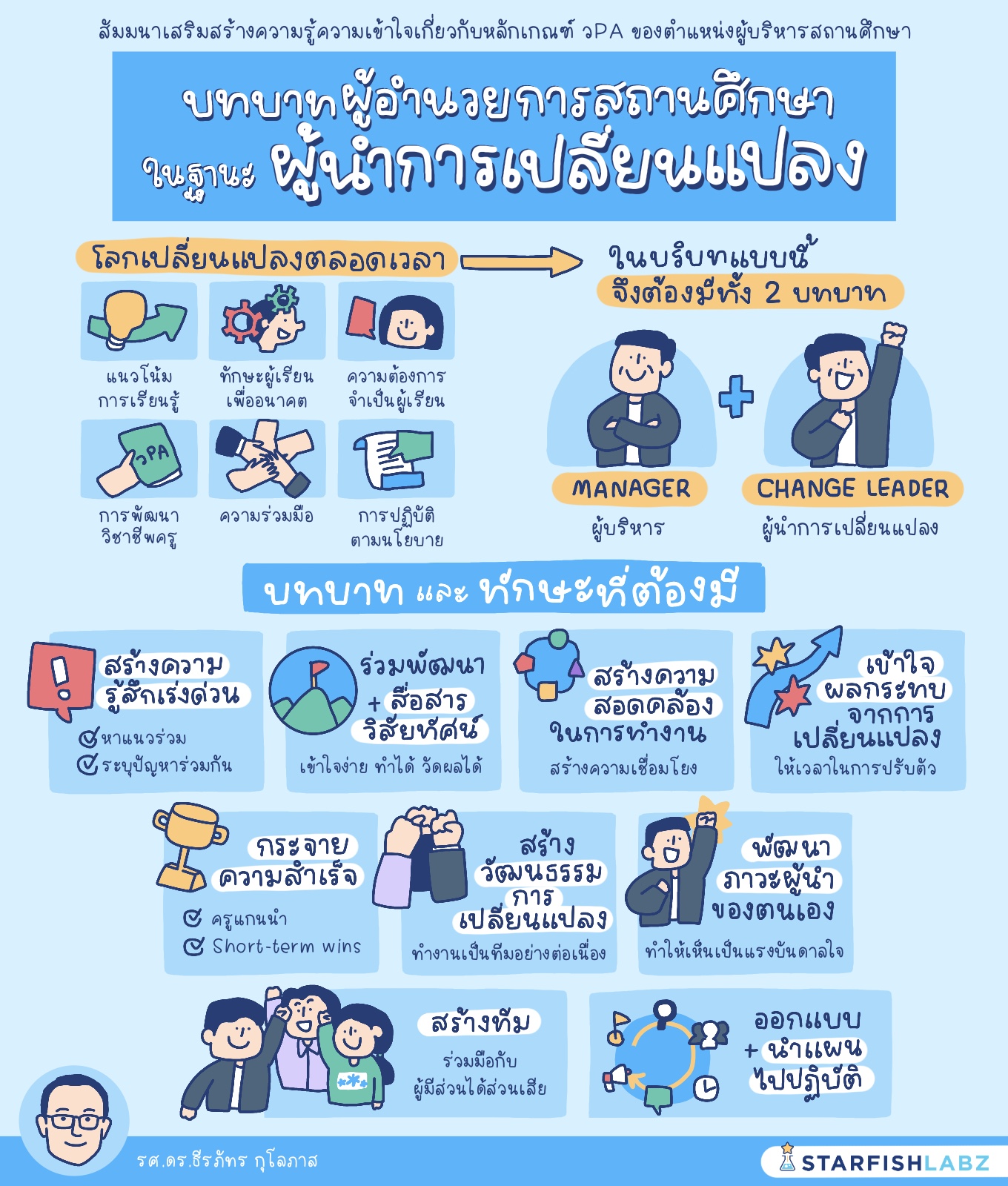 โดย Starfish Labz ขอนำความรู้จากการบรรยายในหัวข้อย่อย “บทบาทผู้อำนวยการสนับสนุนสถานศึกษาในฐานะผู้นำการเปลี่ยนแปลง” โดยรศ.ดร.ธีรภัทร กุโลภาส มาเผยแพร่ให้ชาว Starfish Labz ดังรายละเอียดต่อไปนี้