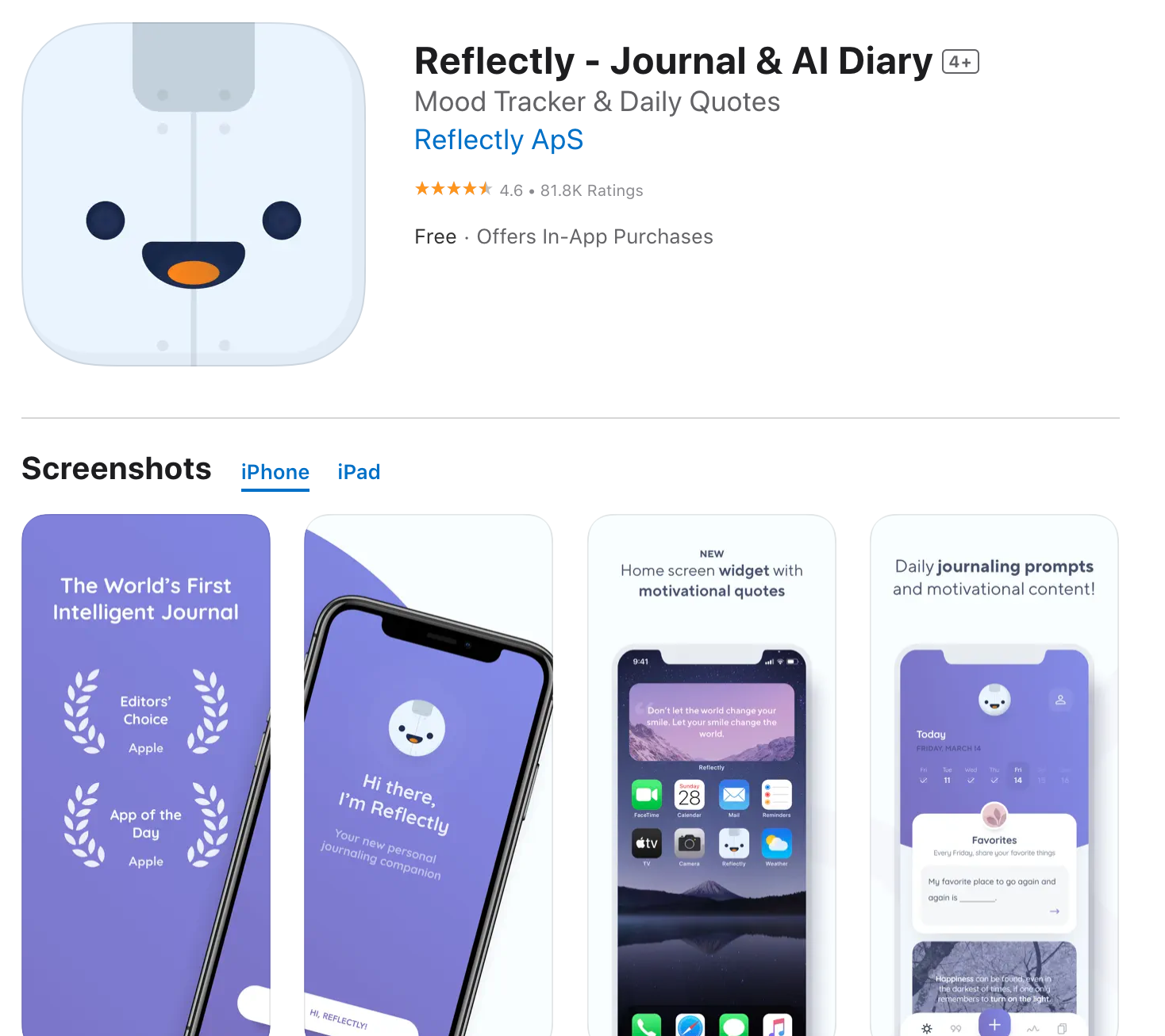ปิดท้ายกันด้วย Reflecty แอปการเขียนบันทึก Journal & AI Diary ซึ่งมีจุดเด่นคือเป็นแอปที่ออกแบบช่วยให้เราเขียนบันทึกเพื่อการดูแลตัวเองโดยเฉพาะในการใช้งานอาจจะไม่ใช่แอปสำหรับการเขียนบันทึกอิสระแต่เป็นในแต่ละวันจะมีการแนะนำหรือคำถามมาให้เราเพื่อช่วยให้เราสะท้อนสิ่งต่างๆ เขียนออกมาตามคำแนะนำหรือคำถามของเขาและยังมี AI ช่วยเราติดตาม Moods หรืออารมณ์ต่างๆ ของเราขณะเขียน เขียนเสร็จแล้วเราก็มาดูผลลัพธ์ความคิดของเราซึ่งก็จะมี AI คอยช่วยประเมินต่างๆ อีกด้วยเรียกได้ว่าใครที่กำลังมองหาแอป Journaling ดีๆ แบบมีคนคอยเสริมต้องลอง Reflectly เลยค่ะ