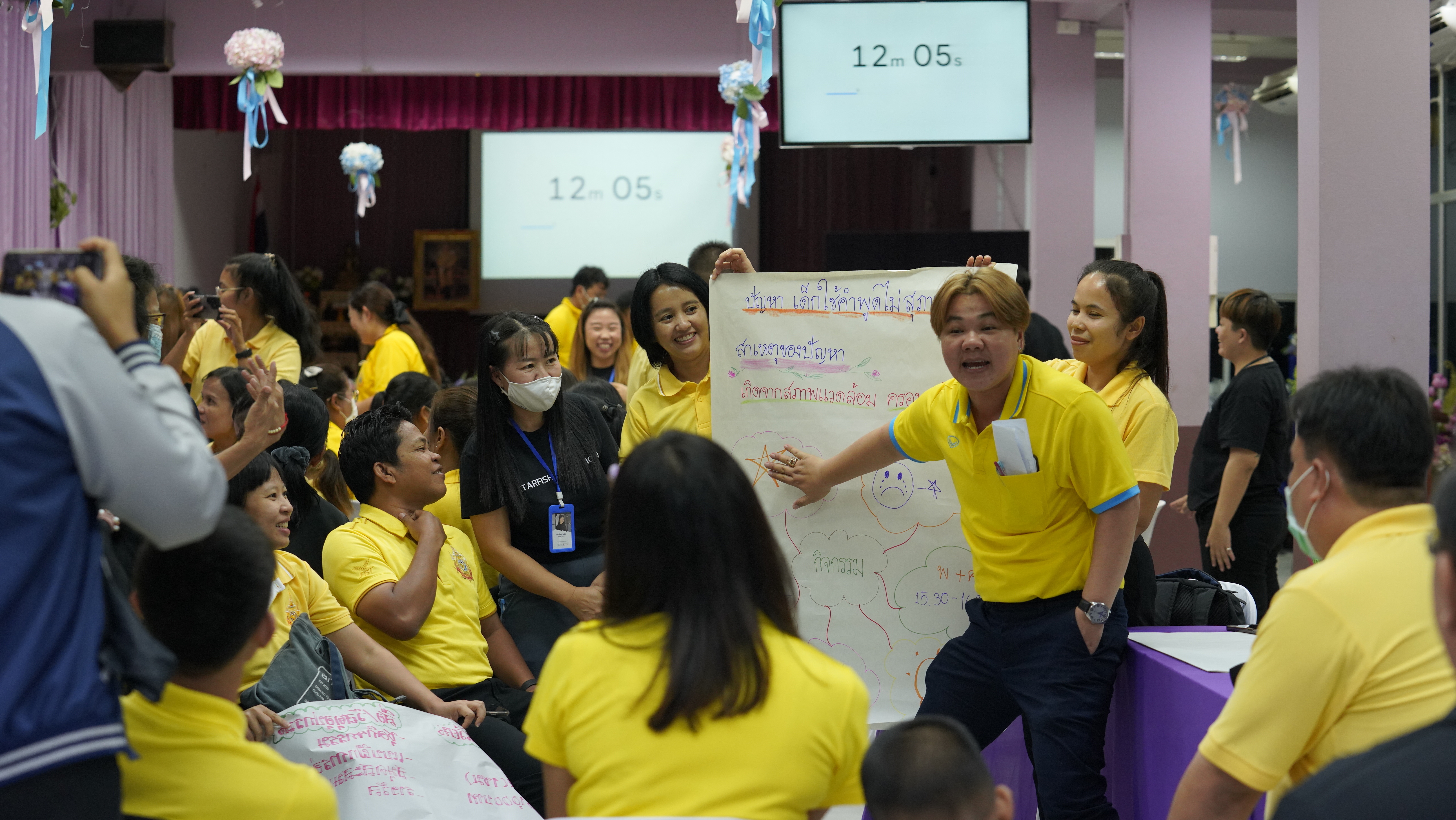จากการที่ได้ไปจัดอบรมให้กับคุณครูในเขตคลองเตยครั้งนี้ ทำให้เห็นภาพบรรยากาศการเรียนรู้ที่น่าปลื้มใจ คุณครูทุกคนมีส่วนร่วมในกิจกรรมอย่างตั้งใจ มีการแบ่งปันไอเดีย ชวนกันคิด ชวนกันสร้างสรรค์ผลงานที่เป็นรูปธรรม ซึ่งครูก็ได้บอกกับทีมโค้ชว่า กิจกรรมสนุกมาก ไม่เหมือนกับการจัดอบรมทั่ว ๆ ไป ที่ครูต้องมานั่งฟังบรรยาย แต่เป็นการอบรมที่ได้ทั้งความรู้ ความสนุกสนานและได้ลงมือทำจริงทำให้เข้าใจกระบวนการเรียนรู้ได้ชัดเจนขึ้น