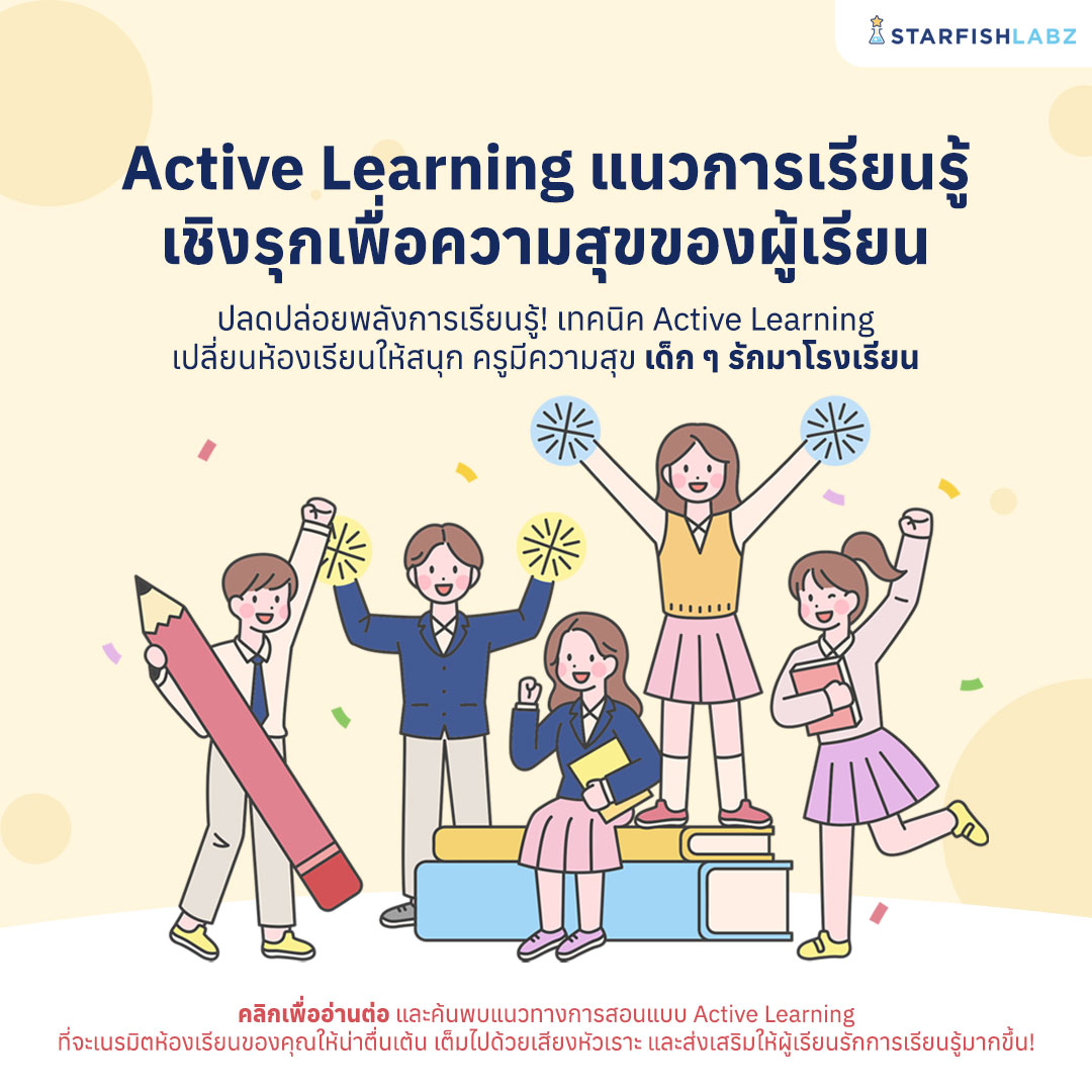 เชื่อว่าไม่มีครูคนไหนอยากให้นักเรียนนั่งอยู่ในห้องเรียนของเราด้วยความรู้สึกเบื่อหน่าย หากอ่านบทความนี้จบแล้ว เราอยากให้คุณครูทุกท่านลองนำเทคนิค Active Learning ไปประยุกต์ใช้กับเด็ก ๆ ของตัวเองทีละนิด รับรองว่าบรรยากาศห้องเรียนของเราจะดูมีความสุขขึ้นอย่างแน่นอน แล้วอย่าลืมพัฒนาห้องเรียนของเราให้มีคุณภาพควบคู่ไปกับความสนุกสนาน เพียงแค่ปรับวิธีการสอนของเราให้เข้ากับยุคสมัย ตัวเราเองก็อาจกลายเป็นหนึ่งในเหตุผลจะที่ทำให้เด็กบางคนอยากมาโรงเรียนทุกวันก็เป็นได้นะคะ