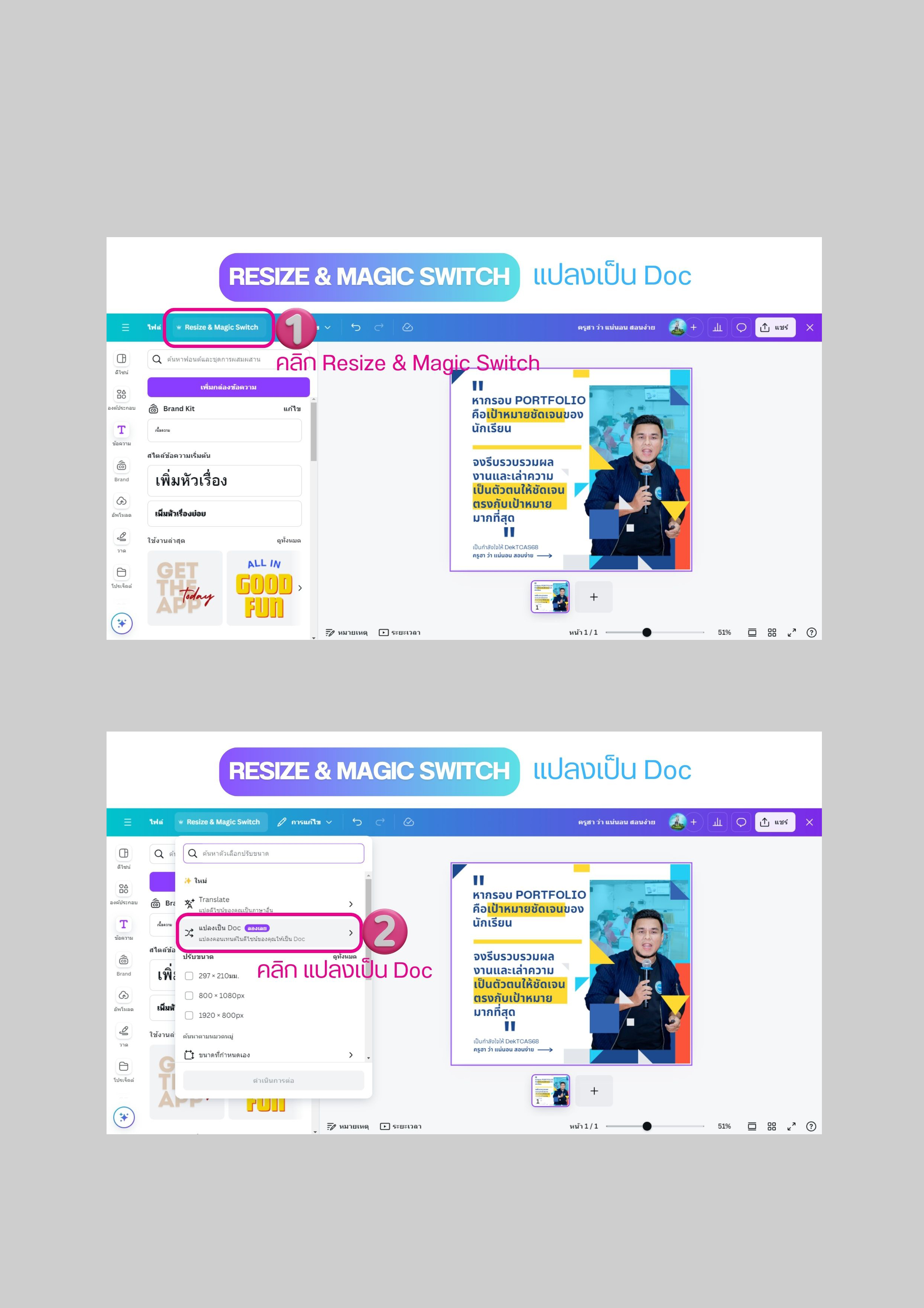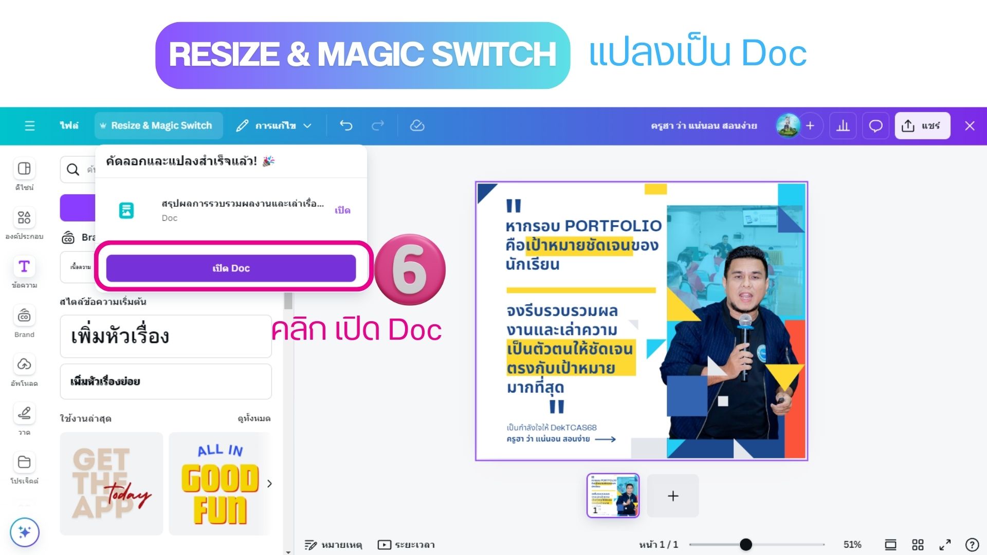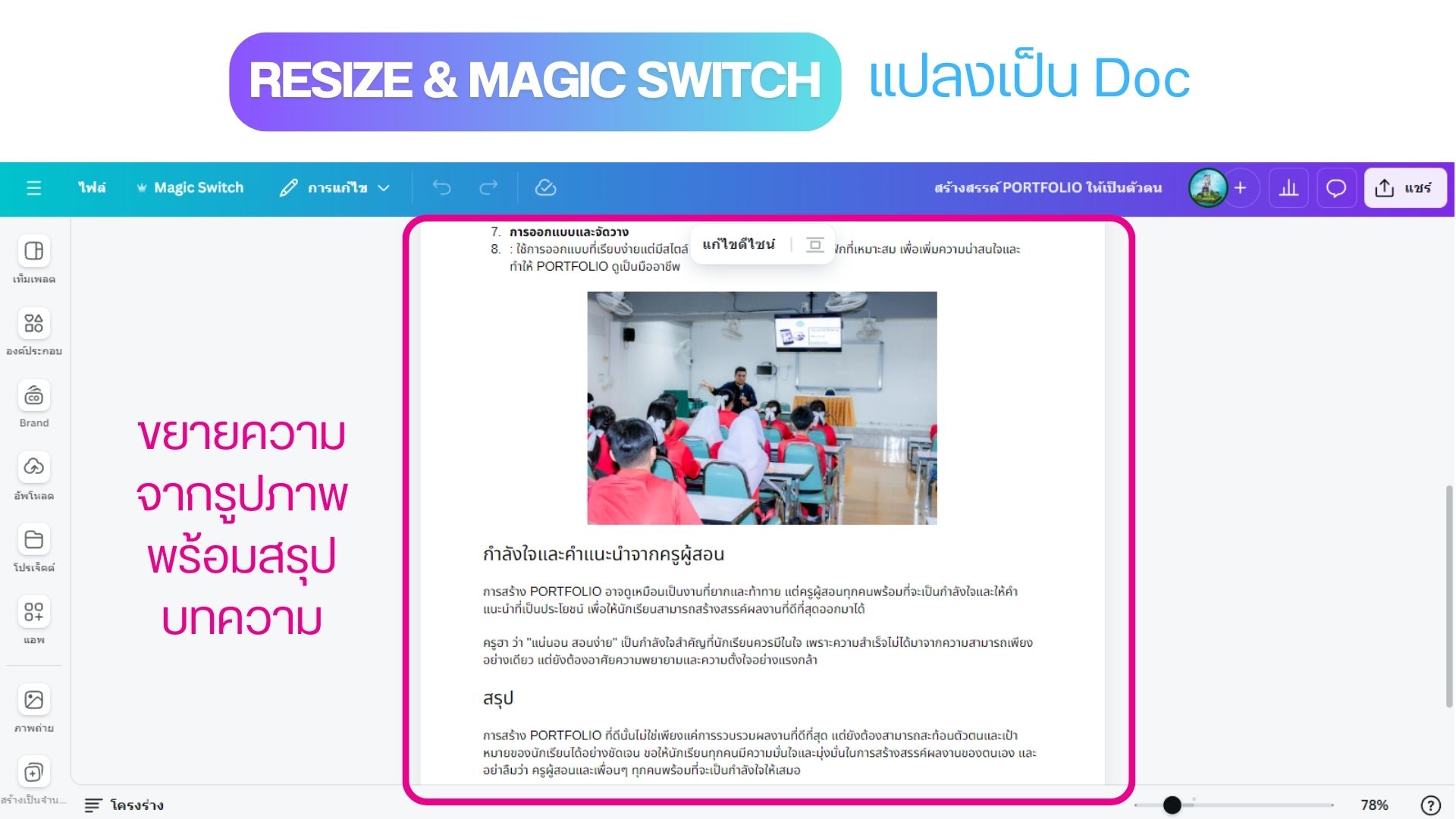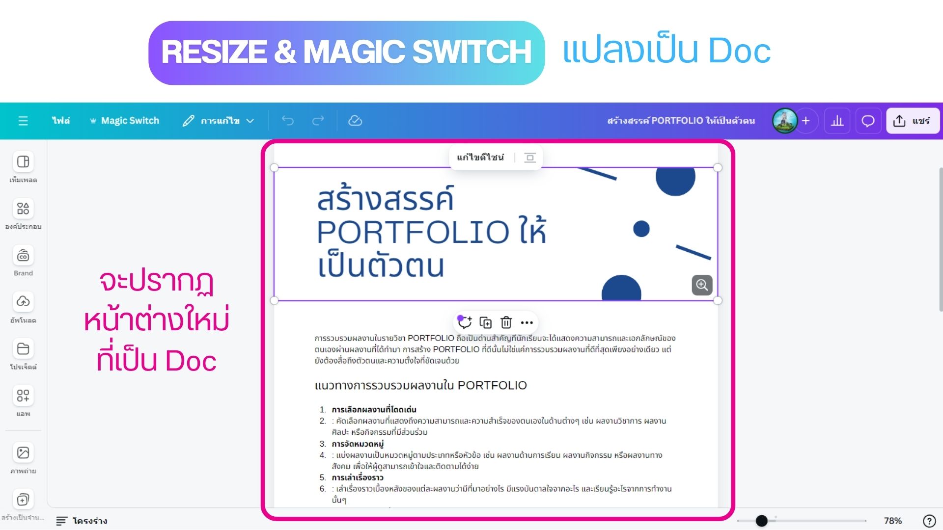 Resize & Magic Switch แปลงเป็น Doc ด้วย Canva
