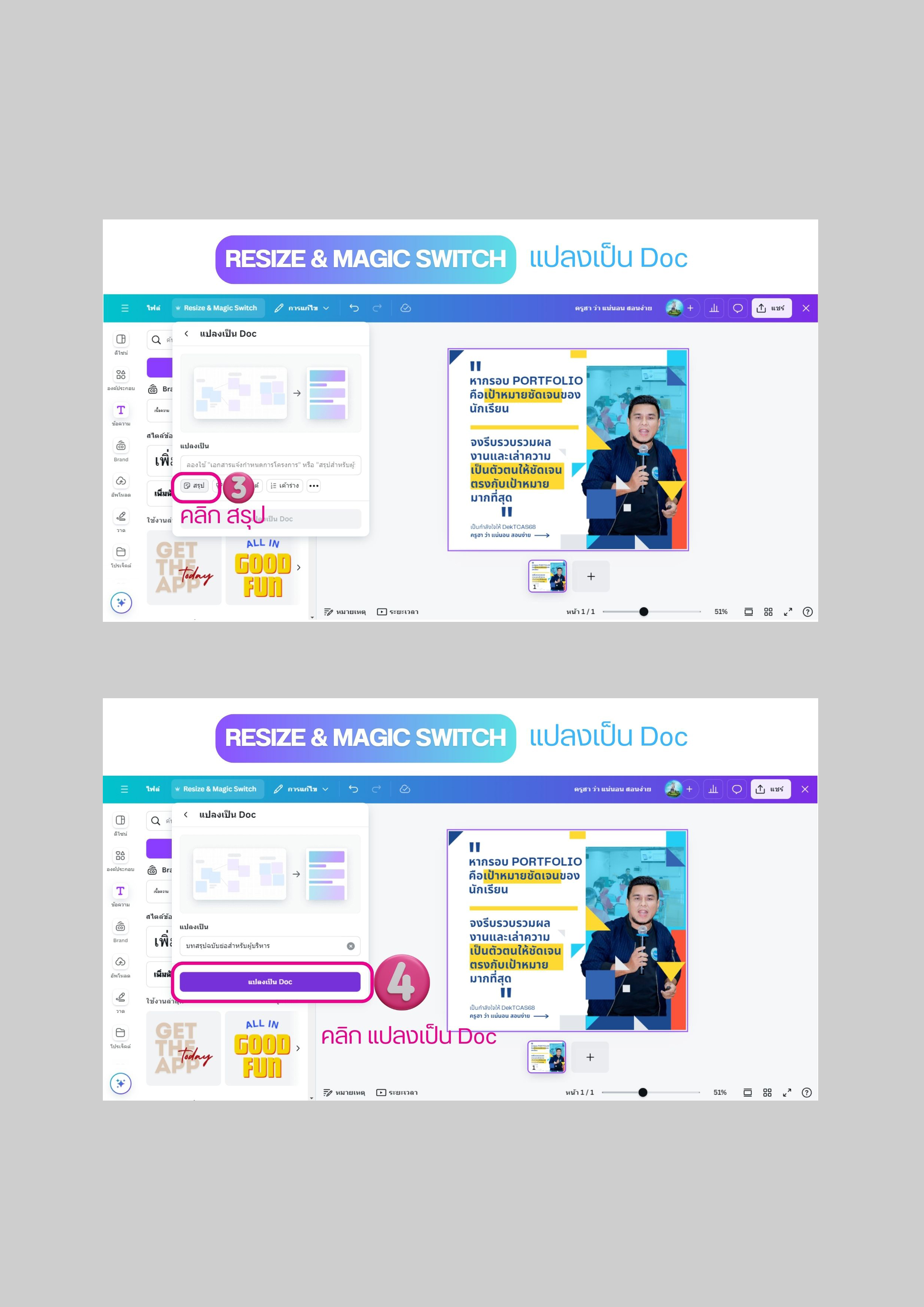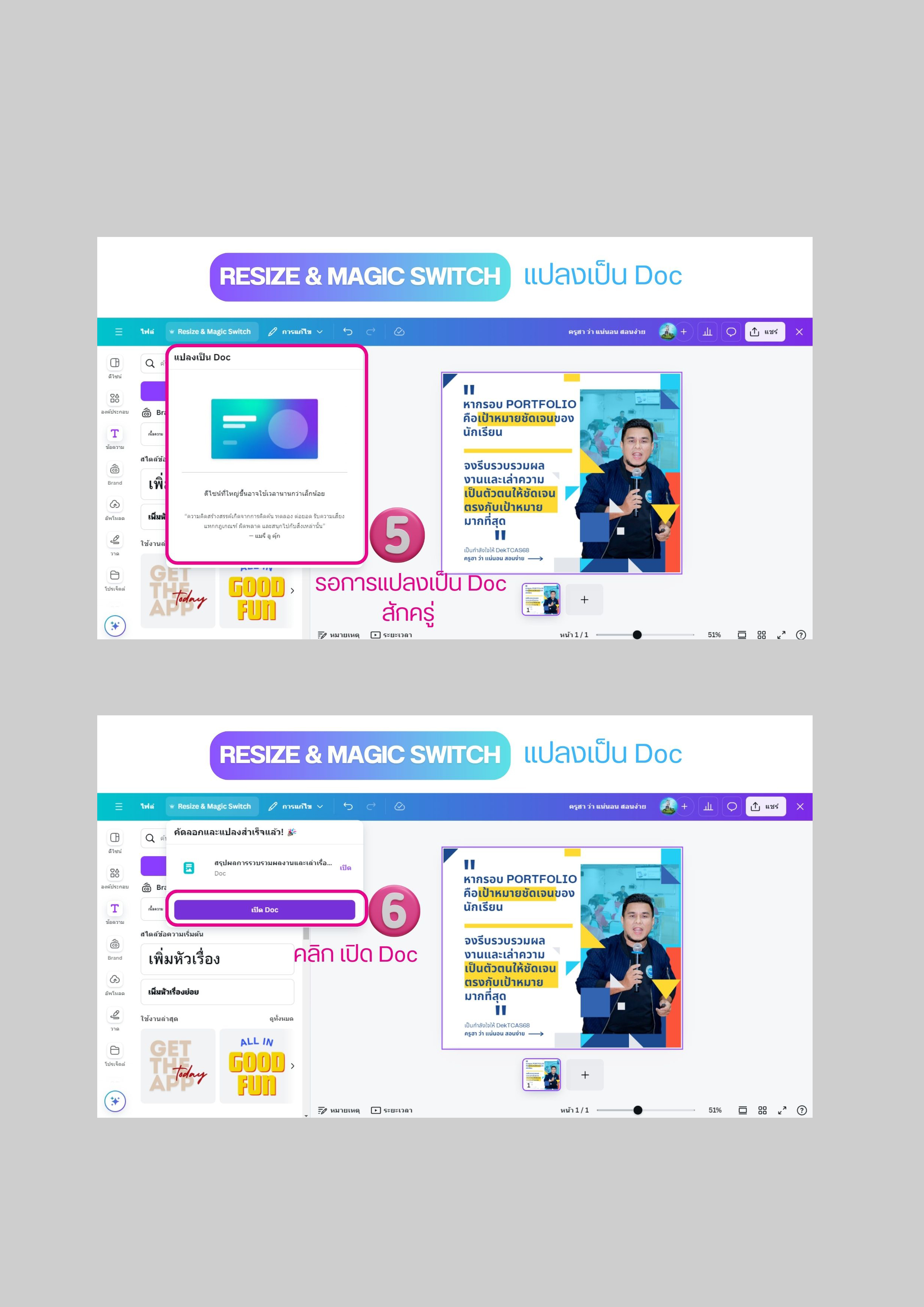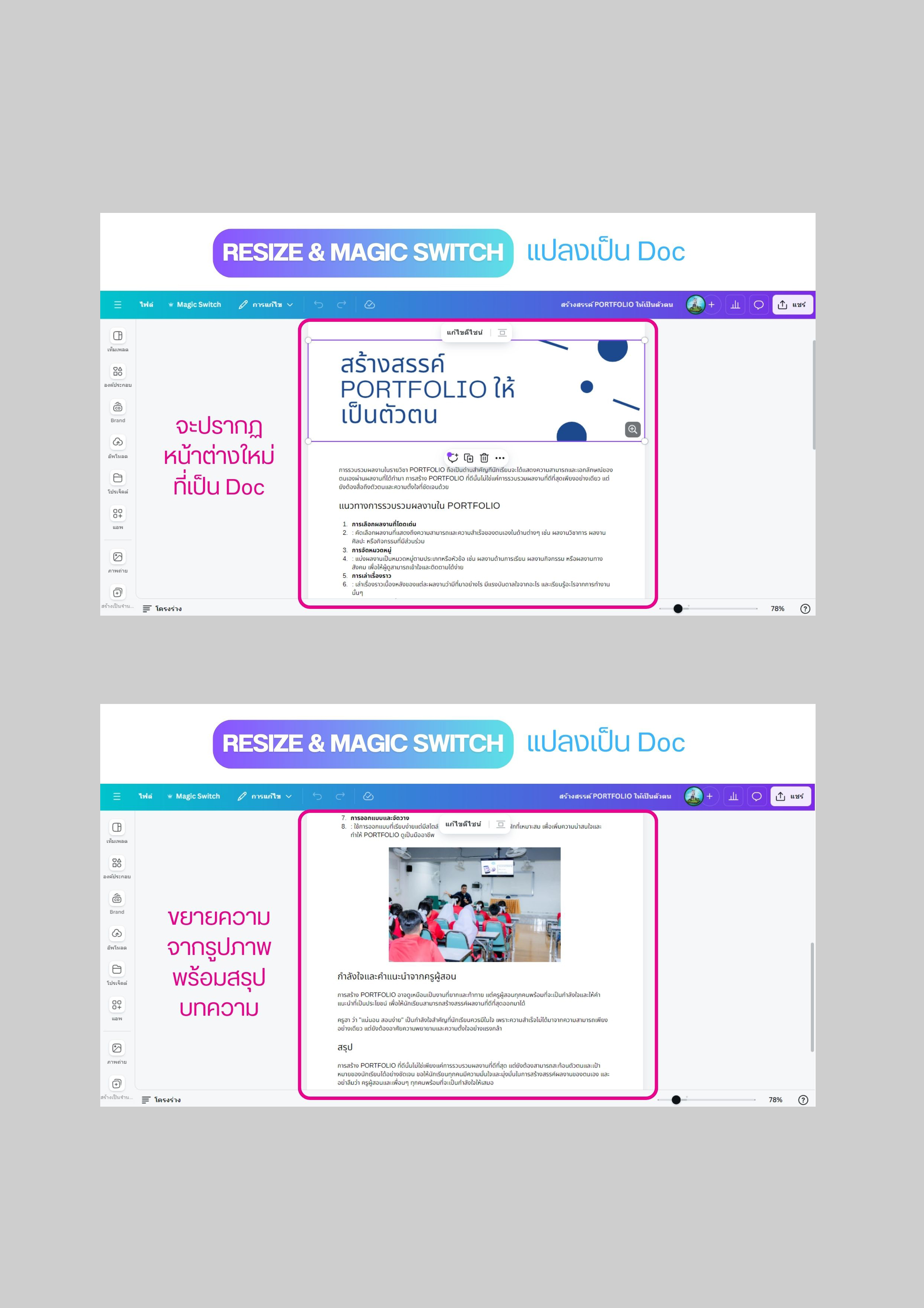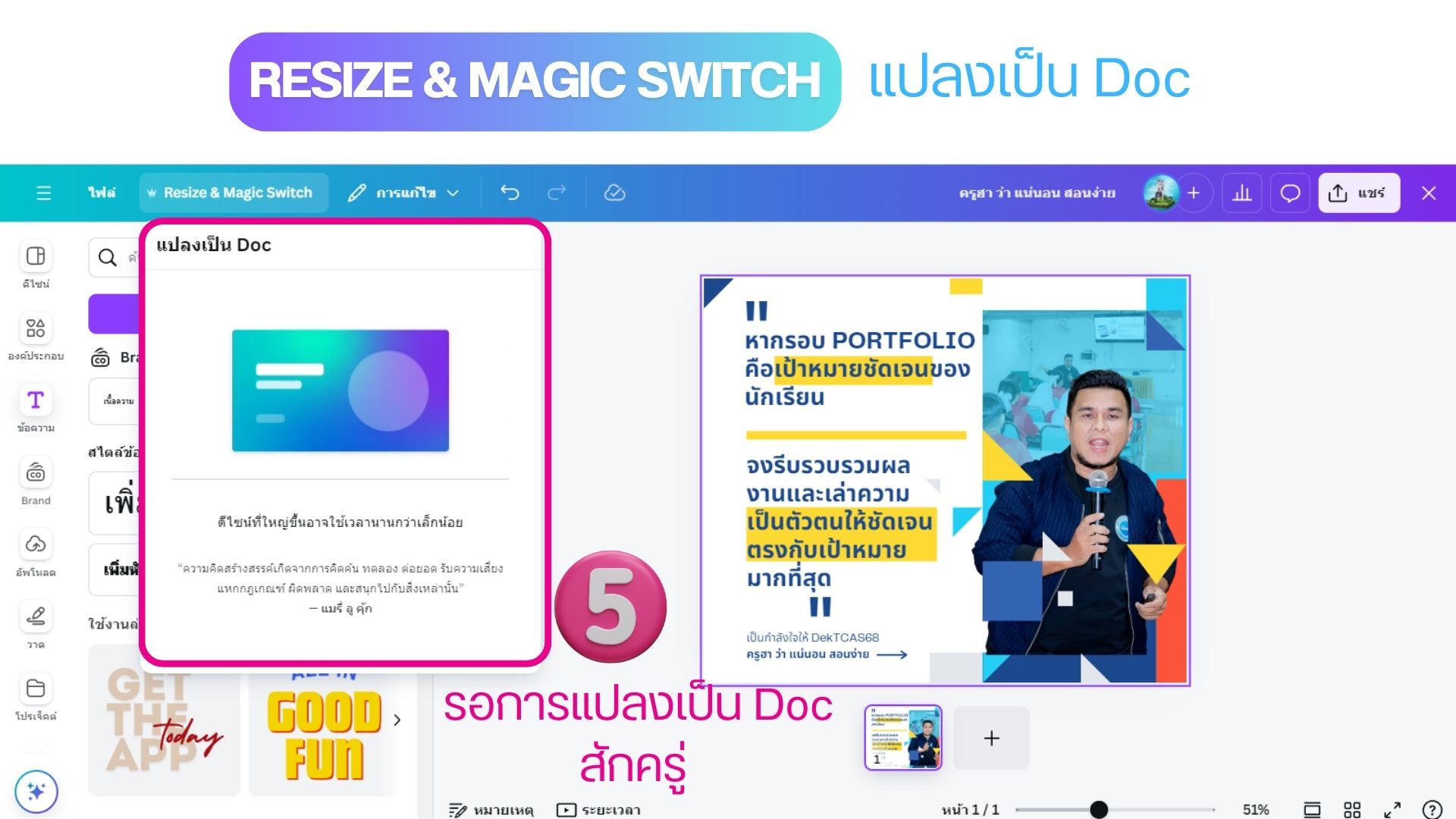 Resize & Magic Switch แปลงเป็น Doc ด้วย Canva