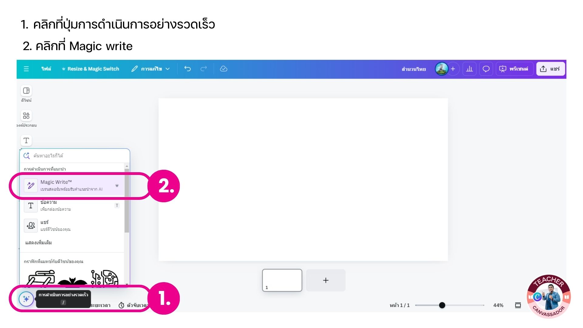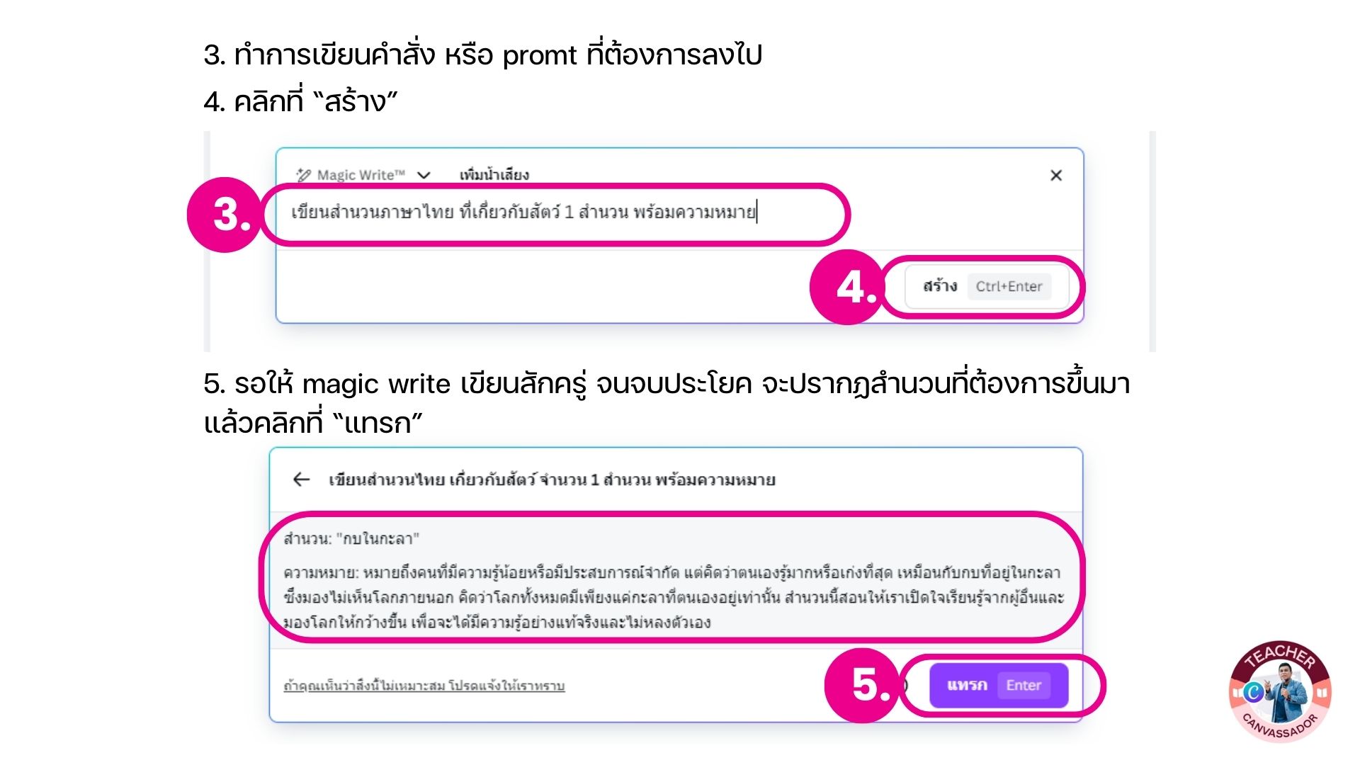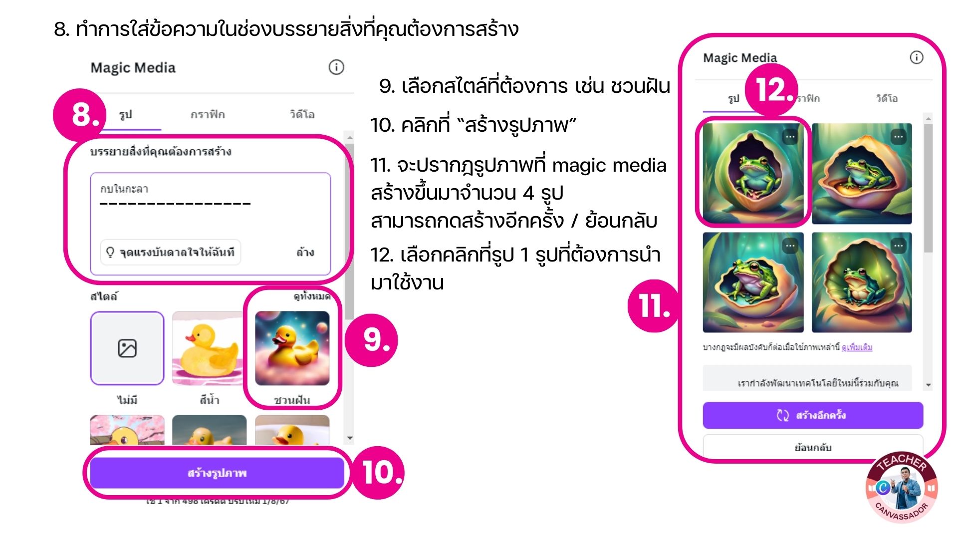 วันนี้ครูฮา มานำเสนอ 12 ขั้นตอนการใช้ Canva ประยุกต์ใช้ Magic write สร้างสำนวนไทย และ Magic media สร้างภาพประกอบสำนวน (ตามภาพประกอบ)