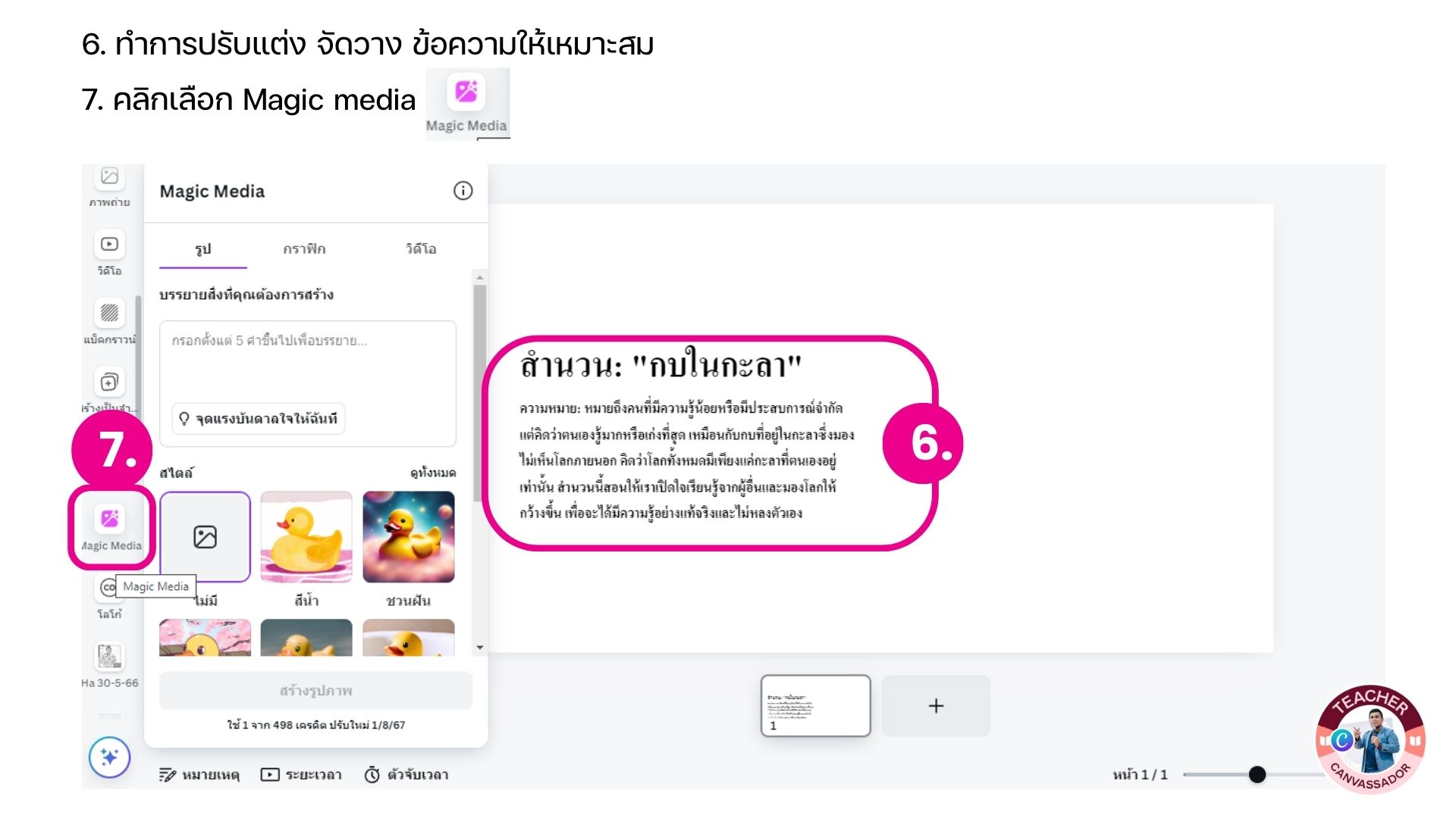 Canva ประยุกต์ใช้ Magic write สร้างสำนวนไทย และ Magic media สร้างภาพประกอบสำนวน
