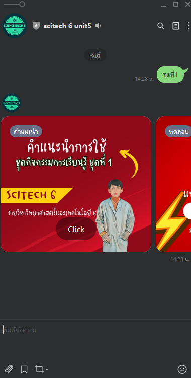 ชุดกิจกรรมการเรียนรู้บน Line official account เรื่อง ปฏิกิริยาเคมีและวัสดุต่างๆในเมืองพิชัย รายวิชาวิทยาศาสตรแืและเทคโนโลยี 6