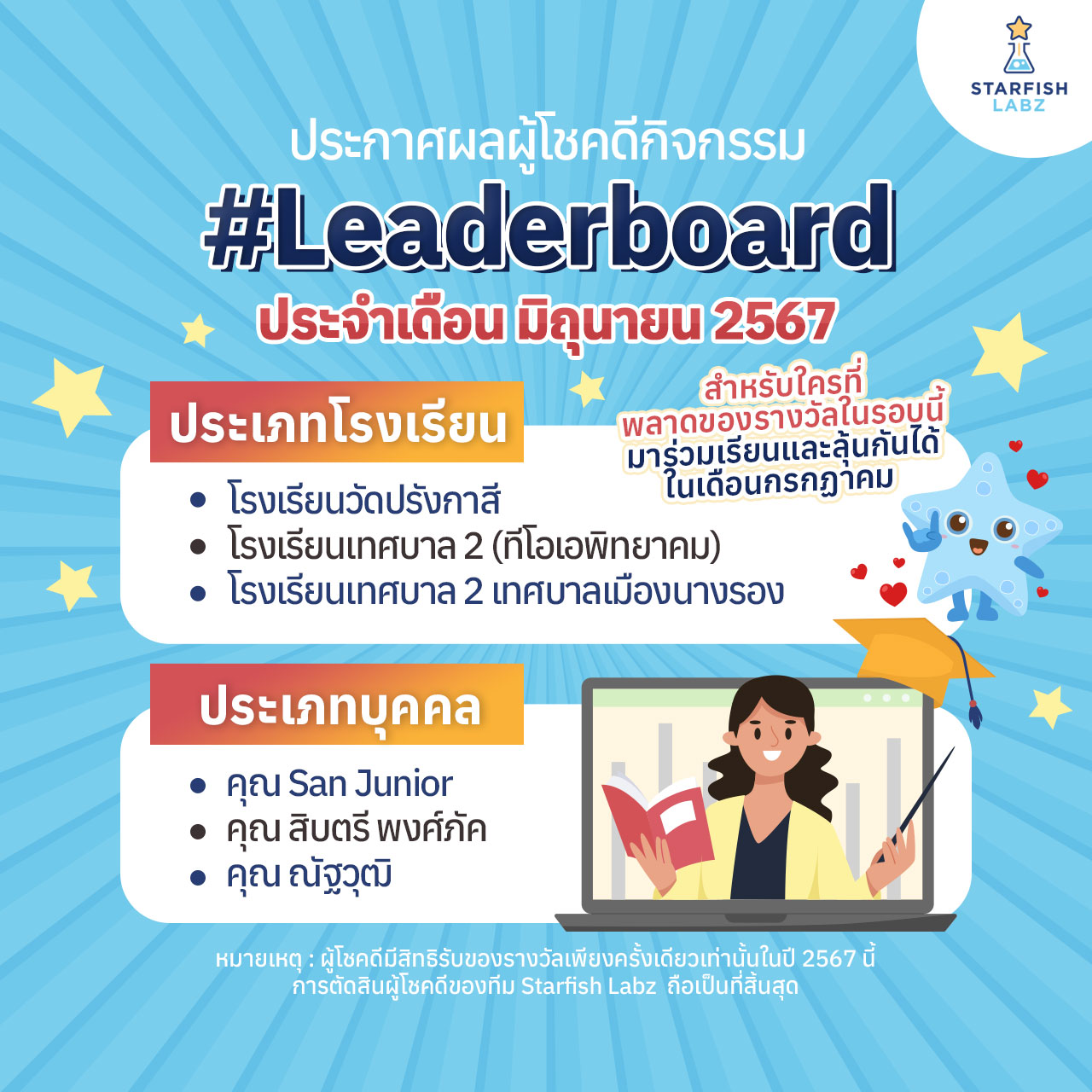 ประกาศผลสุดยอดผู้เรียนรู้ ประจำเดือน มิถุนายน 2567
