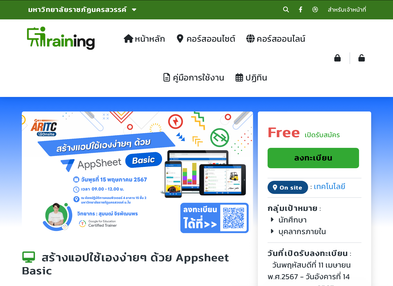 พัฒนาตนเอง ด้วยการแชร์ความรู้ให้กับท่านอื่นๆ ในรูปแบบ Online และ Onsite ครับ training.nsru.ac.th