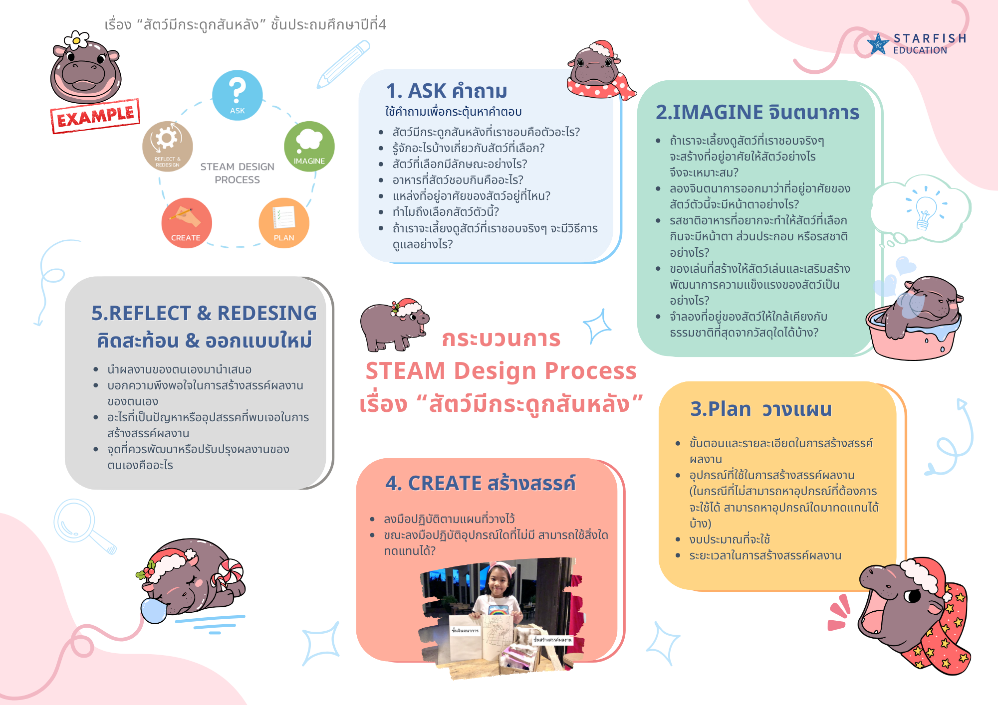ชวนเพื่อนๆมาแชร์ไอเดีย ตัวอย่างการตั้งคำถามกิจกรรม Makerspace ผ่าน กระบวนการ STEAM Design Process เรื่อง “สัตว์มีกระดูกสันหลัง” และ เรื่องพลังงานความร้อน ถ้ายังไม่รู้ว่าจะถามเด็กๆยังไงดีตามมาเรียนรู้ไปด้วยกันค่ะ