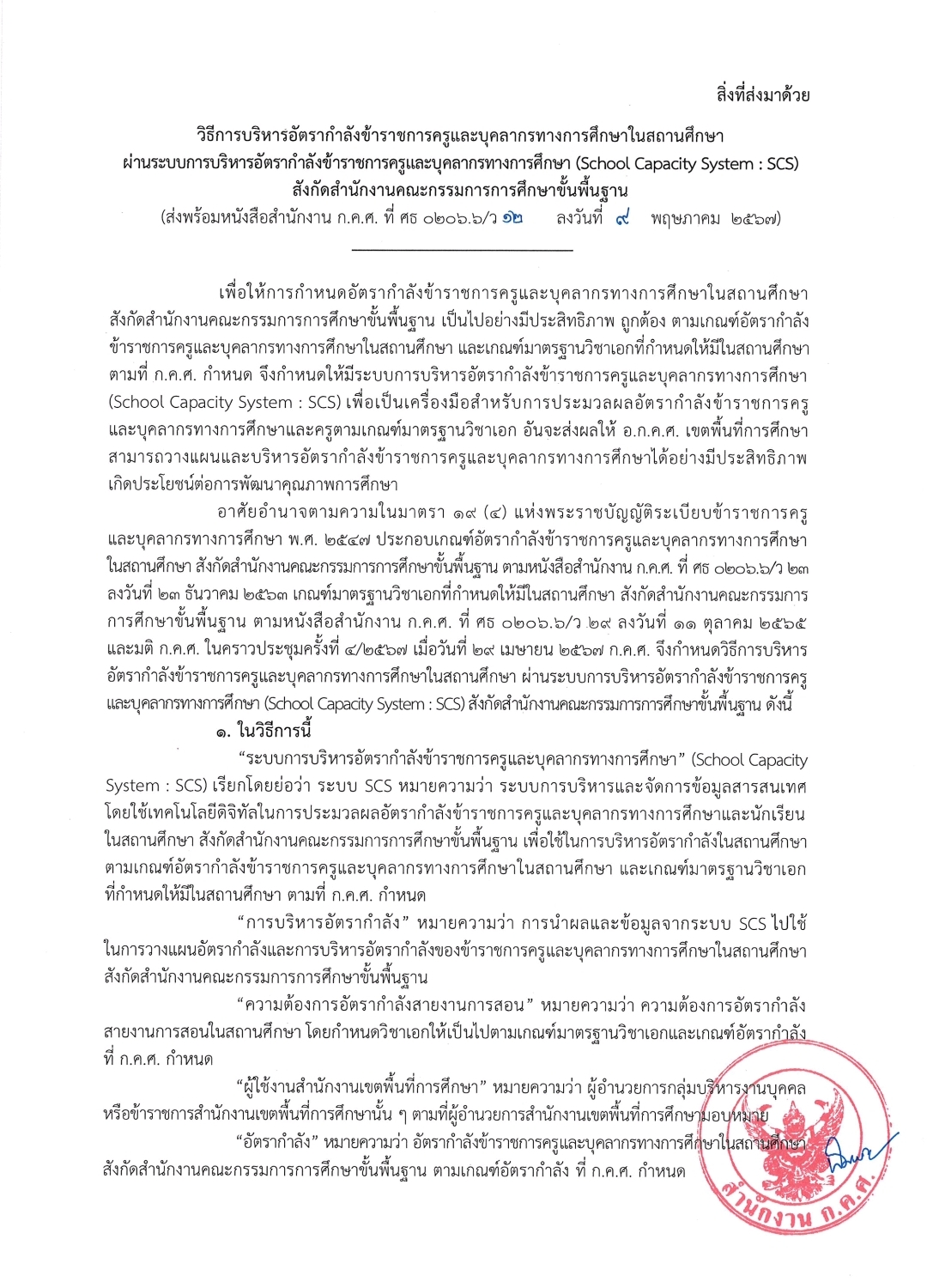 SCS ระบบบริหารอัตรากำลังครูในโรงเรียน หรือ ระบบการบริหารอัตรากำลังข้าราชการครูและบุคลากรทางการศึกษา SCS : (School Capacity System : SCS)