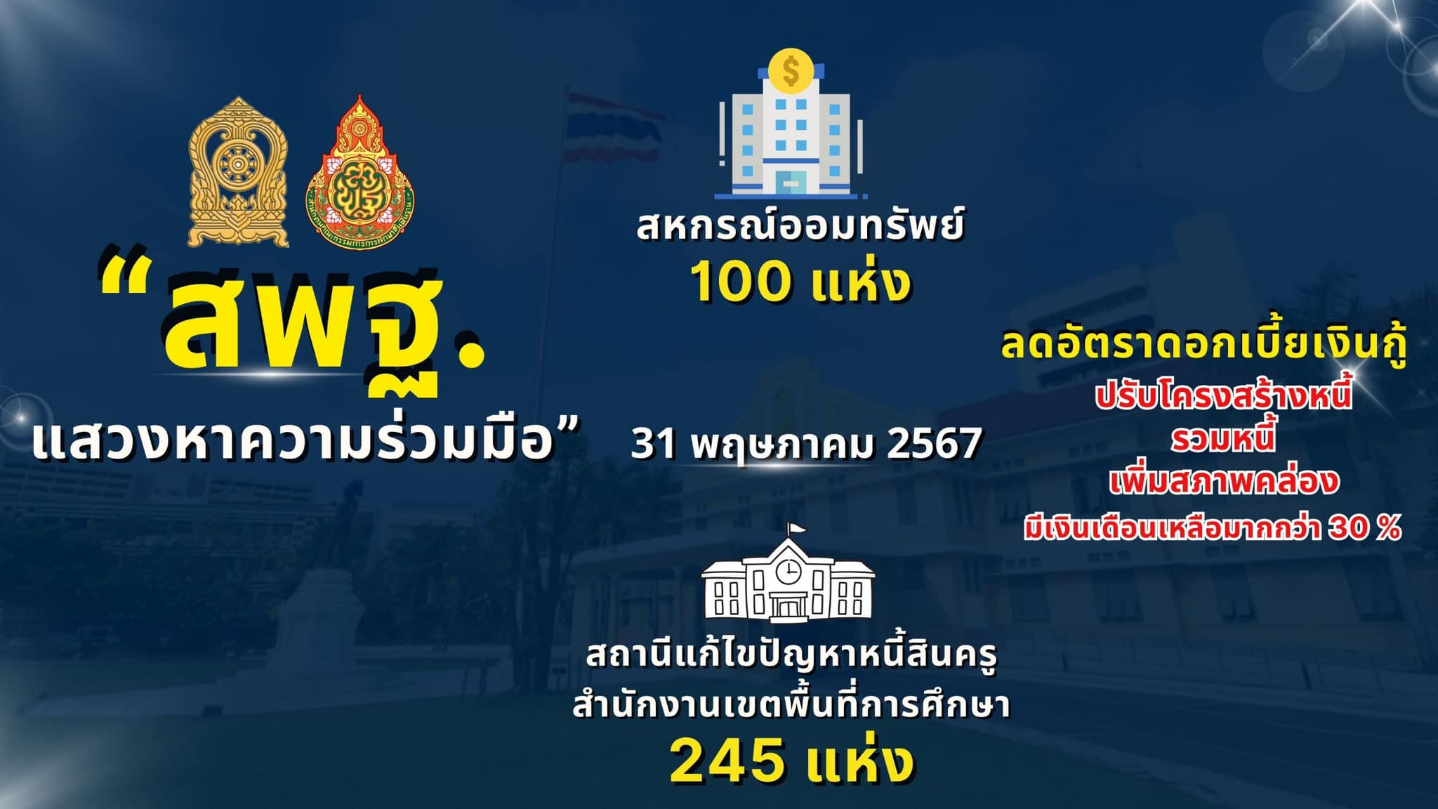ครูกว่า 555,000 คนมีเฮ สพฐ. จับมือสถานีแก้หนี้ร่วมกับสหกรณ์ออมทรัพย์ครูทั่วประเทศทยอยลดอัตราดอกเบี้ยเงินกู้