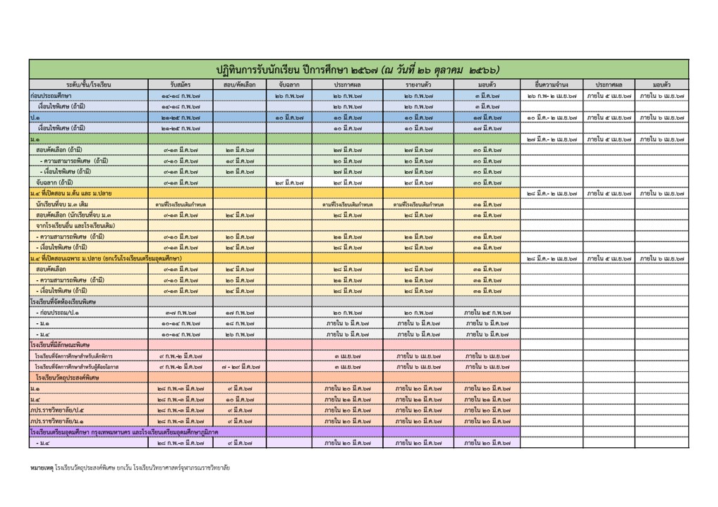 ประกาศสำนักงานคณะกรรมการการศึกษาขั้นพื้นฐาน เรื่อง นโยบายและแนวปฏิบัติเกี่ยวกับการรับนักเรียน สังกัด สพฐ. ปีการศึกษา 2567 และปฏิทินการรับนักเรียน ปีการศึกษา 2567