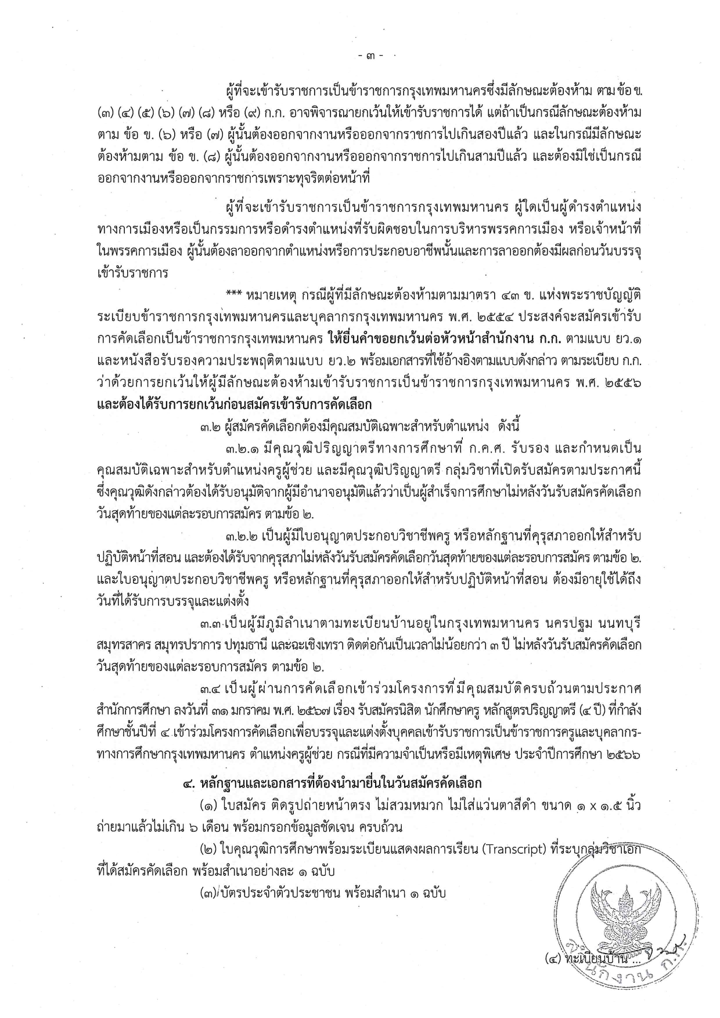 เพื่อบรรจุและแต่งตั้งเข้ารับราชการเป็นข้าราชการครูและบุคลากรทางการศึกษากรุงเทพมหานคร ตำแหน่งครูผู้ช่วย