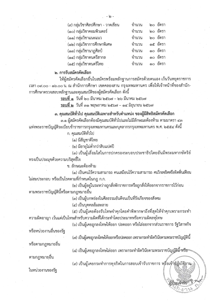 กรุงเทพมหานคร เปิดสอบครูผู้ช่วย กรณีพิเศษ 15 วิชาเอก 730 อัตรา รับสมัคร รอบที่ 1 ตั้งแต่ 20-26 มี.ค.2567 และรอบที่ 2 ตั้งแต่ 31 พ.ค.-14 มิ.ย.2567
