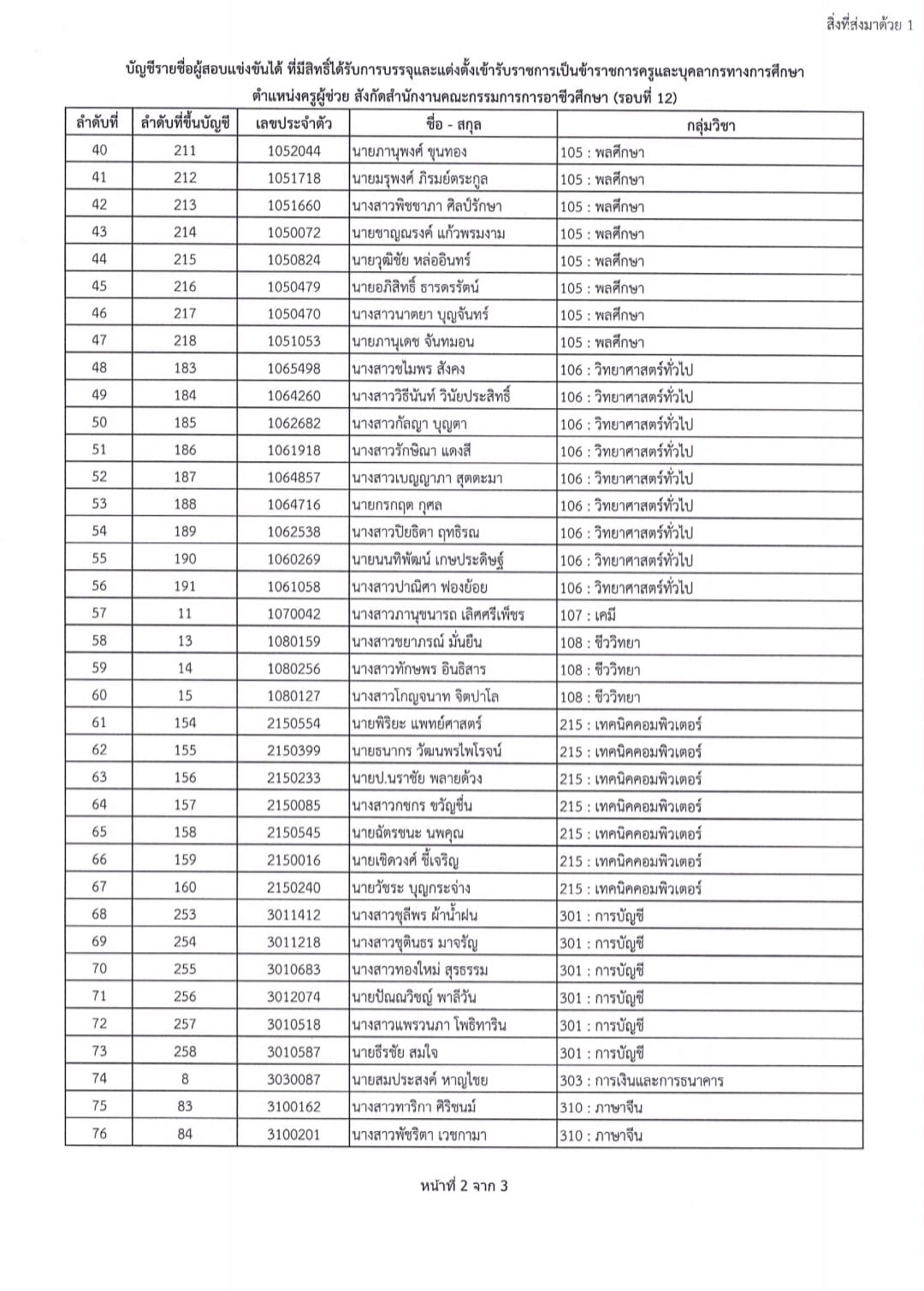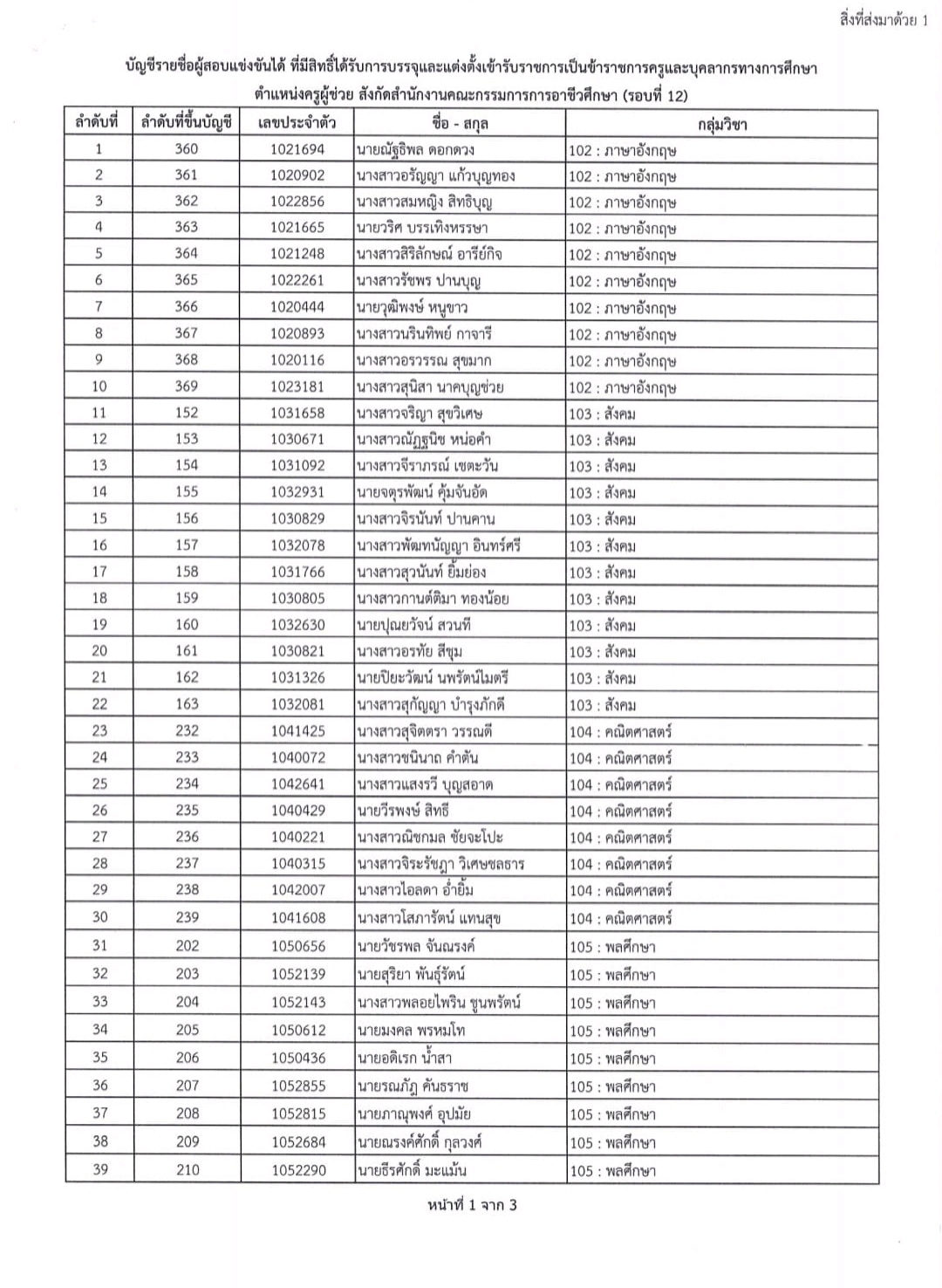 มีหนังสือ เรียกรายงานตัวเพื่อแสดงความจำนงเข้ารับการบรรจุและแต่งตั้งเข้ารับราชการเป็นข้าราชการครูและบุคลากรทางการศึกษา ตำแหน่งครูผู้ช่วย สังกัดสำนักงานคณะกรรมการการอาชีวศึกษา รอบที่ 12 โดยมีรายละเอียดดังนี้